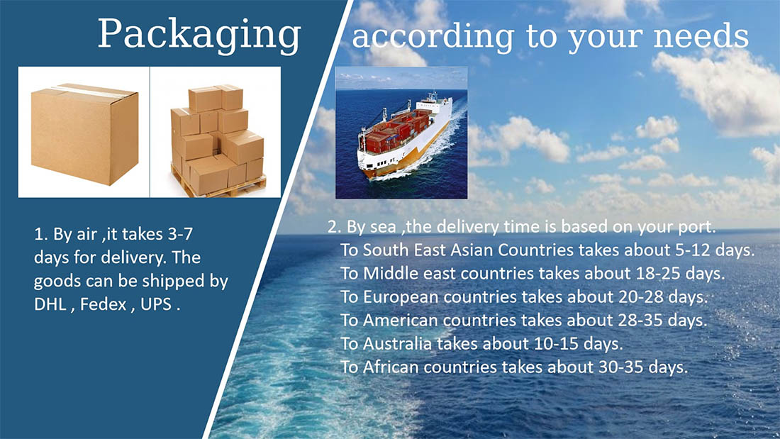 1.空気ごとに、配達には3〜7日かかります。DHL、FedEx、UPSによって商品を出荷できます。