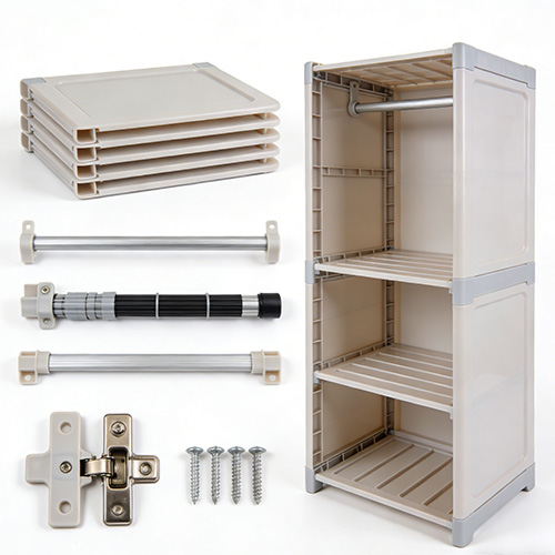 プラスチック折りたたみワードローブ部品成形の適用範囲は、プラスチック折りたたみワードローブのコンポーネントと密接に関連しており、P&Mの成形技術はすべてのコア部品をカバーし、お客様の生産を包括的にサポートします。主な用途分野の 1 つは、ワードローブの棚、ボトム ブラケット、垂直ポールなどの耐荷重部品の成形です。これらの部品には、衣類やその他のアイテムの重量に耐えられる十分な強度が必要です。 P&M のプラスチック折りたたみワードローブ部品成形では、強化材料を使用し、金型のゲート システムを最適化して材料が金型キャビティ内に均一に充填されるようにし、部品の構造強度を向上させます。このプロセスで成形された耐荷重棚は、変形することなく 30kg 以上の重量に耐えることができ、顧客の実際のニーズを満たします。 2 番目の応用分野は、ヒンジ、回転シャフト、バックルなどの折り畳み可能な接続部品の成形です。これらの部品はワードローブの折りたたみ機能の中核であり、優れた柔軟性と耐摩耗性が求められます。 P&M の研究開発チームは、これらの部品の成形用に多数個取りの金型を特別に設計し、部品の表面が滑らかで回転が柔軟になるように射出成形の速度と圧力を調整しました。 10,000 回の折り畳みテストの後でも、接続部品は損傷や詰まりがなく良好な性能を維持しています。 3 番目の応用分野は、ワードローブ パネル、ドア ハンドル、エッジ ストリップなどの装飾部品や補助部品の成形です。これらの部品には、外観と質感に対して高い要件が求められます。 P&M のプラスチック製折りたたみ式ワードローブ部品成形では、高光沢の金型を使用し、原材料にカラー マスターバッチを追加して、異なる色や質感の部品を 1 回で成形できるため、後続の塗装や印刷プロセスの必要性がなくなり、生産リンクが削減され、生産効率が向上します。このプロセスで成形された装飾パネルは、滑らかな表面、均一な色、バリがなく、ワードローブ全体の美しさを高めます。上記の応用分野に加えて、P&Mのプラスチック折りたたみ式ワードローブ部品成形技術は、折りたたみ式シューズラック、折りたたみ式収納ボックス、その他の製品など、他の折りたたみ式プラスチック家具の部品の生産にも拡張でき、顧客に幅広い協力スペースを提供します。